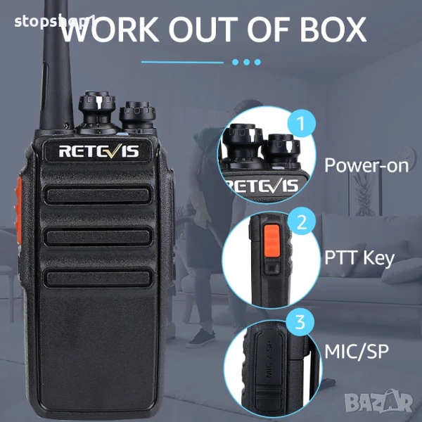 - Работете веднага щом го разопаковате; просто трябва да включите един и същ канал; можете да говорите помежду си, независимо колко RT24 имате