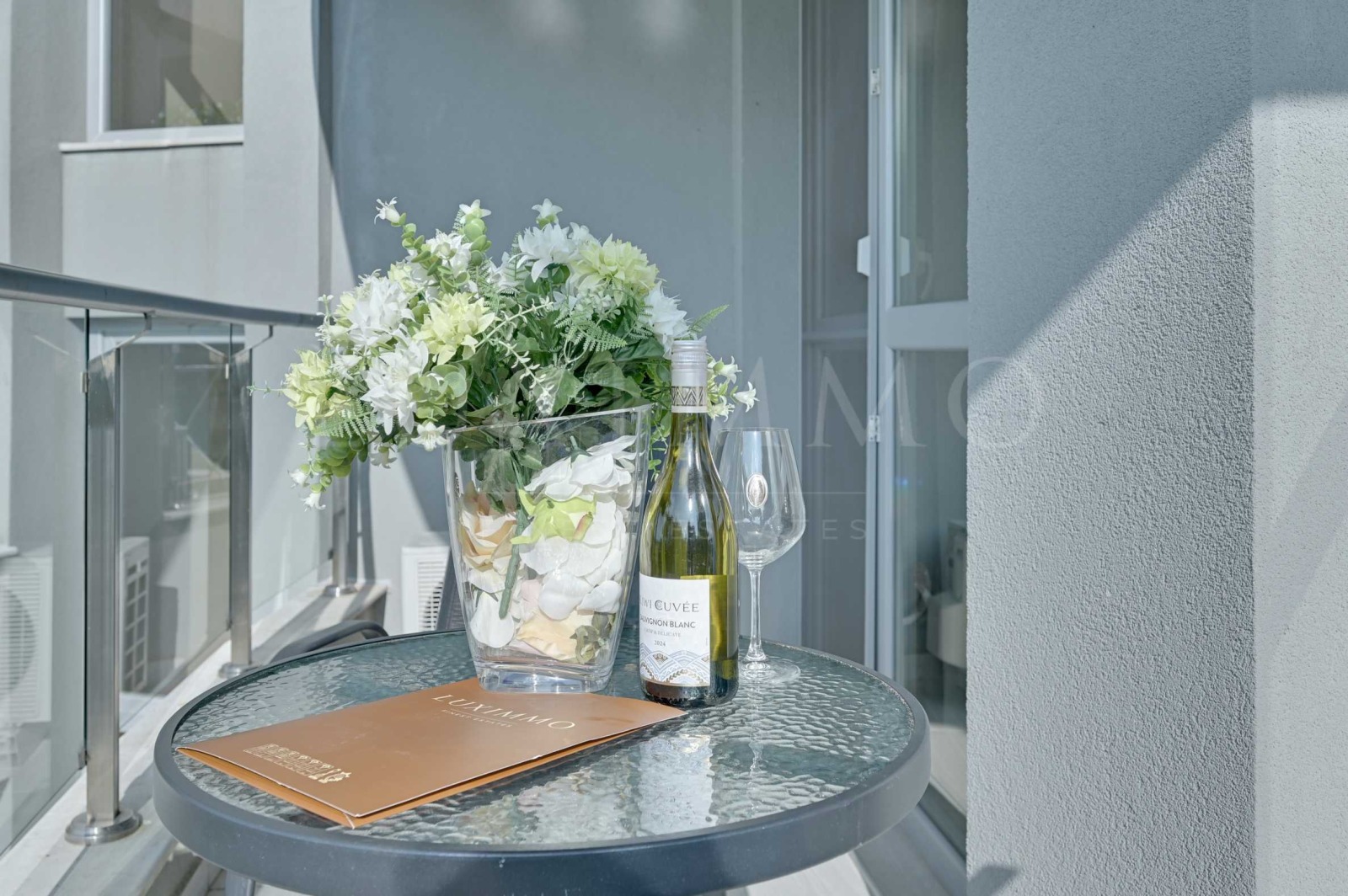 Балкон с красива гледка към морето, която създава усещане за спокойствие и отдих.