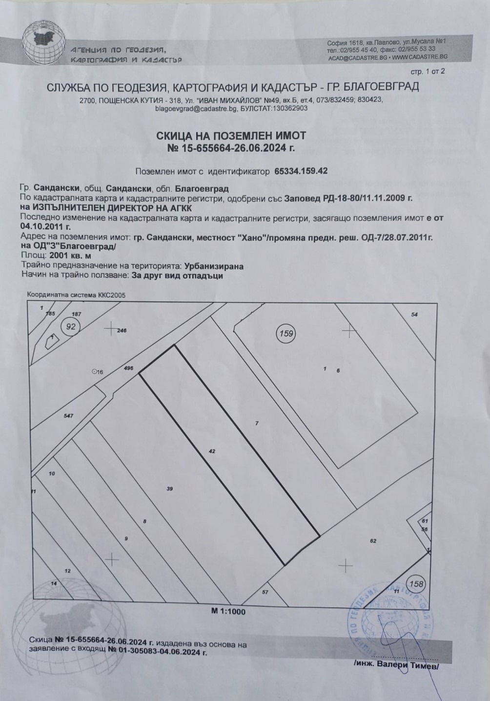 Продава ПАРЦЕЛ, гр. Сандански, област Благоевград → Обява 50851438