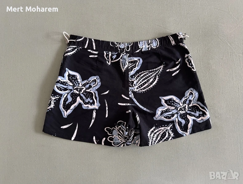 Продавам стилни и свежи дамски къси панталони в много добро състояние. Материята е лека и приятна на допир. Дизайнът е с флорален принт в черно, бяло и синьо.