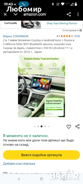 мини безжичен Carplay и Android Auto с бърза и стабилна 5Ghz WiFi Bluetooth връзка, свързан към Carplay за Apple, съвместим с iOS10+/Android 11+ и автомобили от 2016 г., черен.Надстройте до бързо и стабилно пътуване: Подобрете шофирането си с безжичния Carplay адаптер. С двуядрен процесор, V5.3 Bluetooth и 5.8GHz WiFi, безжичният Carplay адаптер осигурява безпроблемна, високоскоростна свързаност и 100% точно възпроизвеждане на изображение и звук.