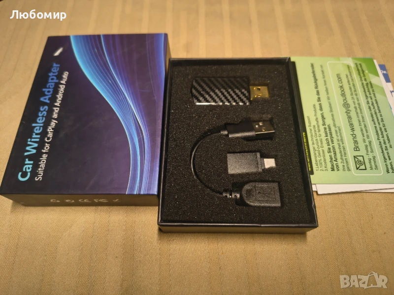 2 в 1 мини безжичен Carplay и Android Auto с бърза и стабилна 5Ghz WiFi Bluetooth връзка, свързан