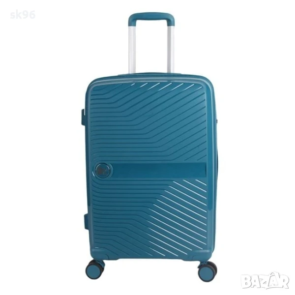 Куфар - тролей за пътуване, синьо-зелен петролен цвят, релефни линии, 58л