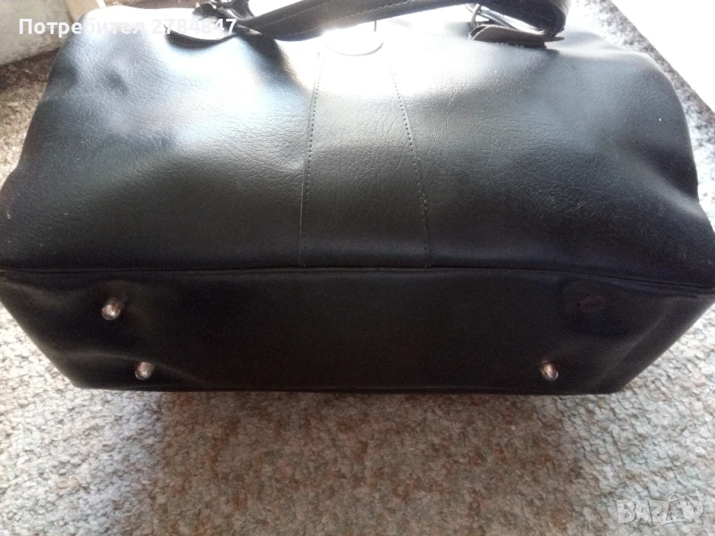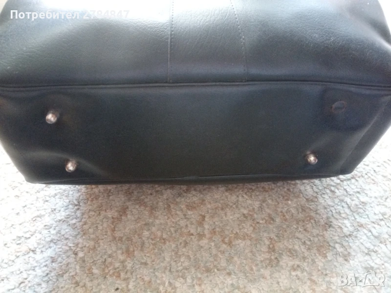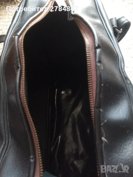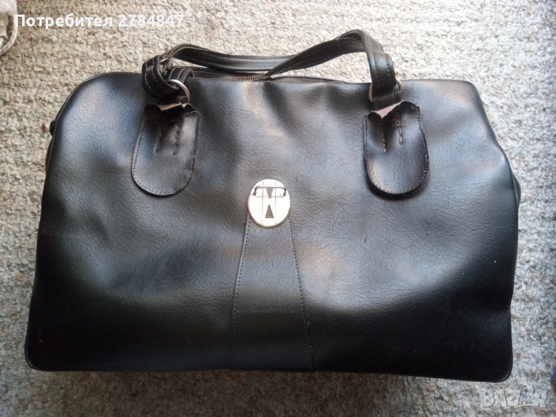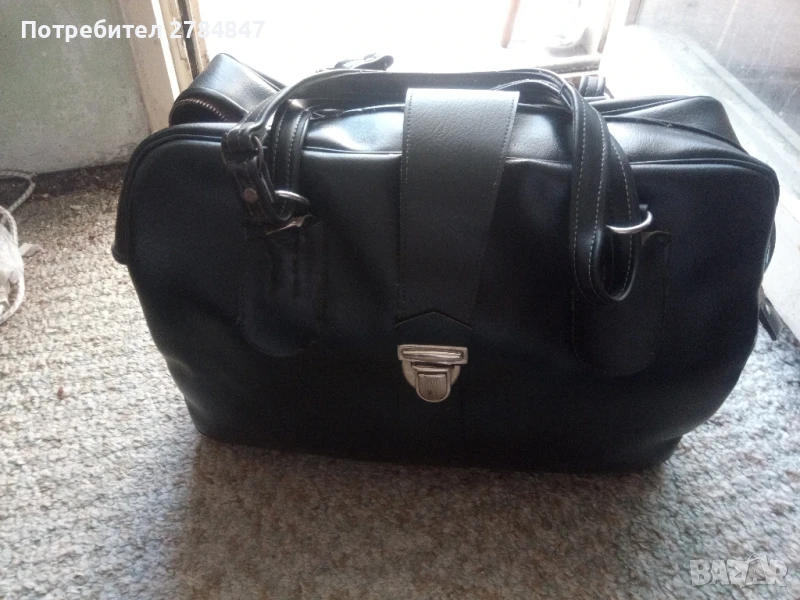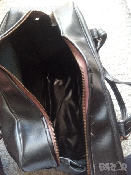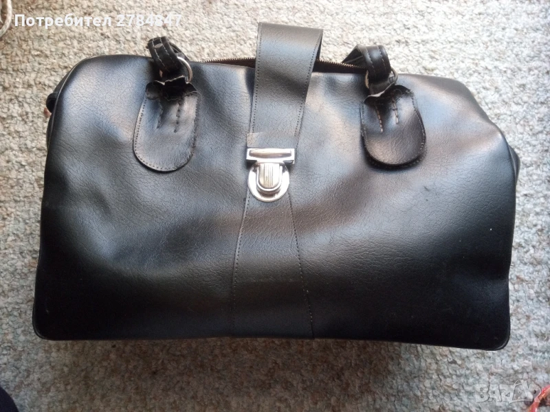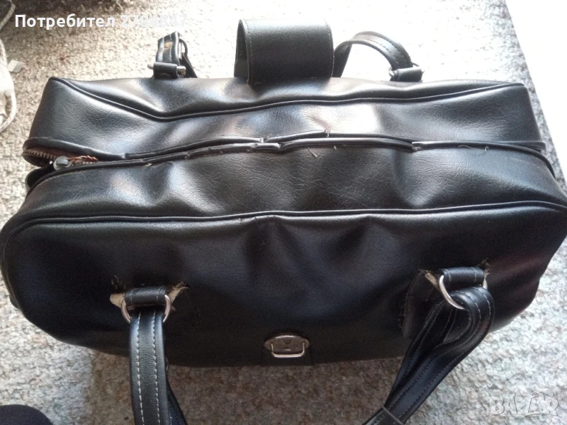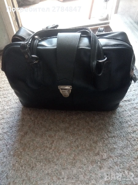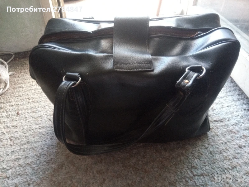 Кожена пътна чанта от социализма Цвят черен. Нуждае се от възстановяване на шева на няколко места и нова висулка на ципа. Размери: височина 31 см, дължина 43 см, ширина 17 см, дължина на дръжките 58 см.