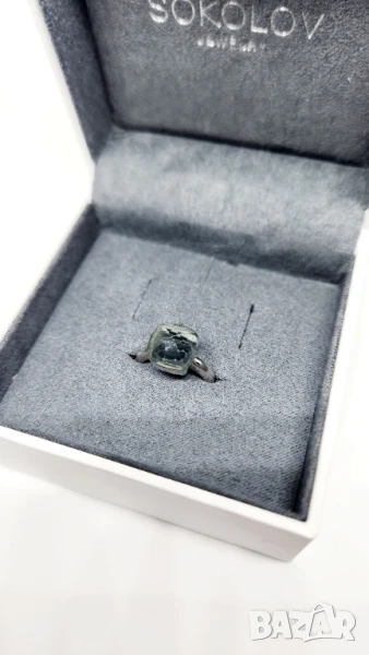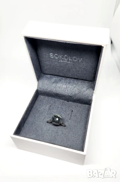 Пръстен Sokolov сребърен, проба SL925, с оригинална кутия. Използван, в добро състояние. Сив прозрачен камък. Стил Pomelatto.