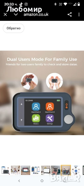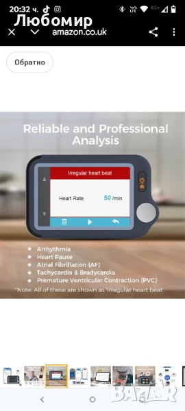 CheckMe ЕКГ монитор със сензорен екран, запис на ЕКГ 30s/60s/5min, анализ ЕКГ изкуствен интелект,