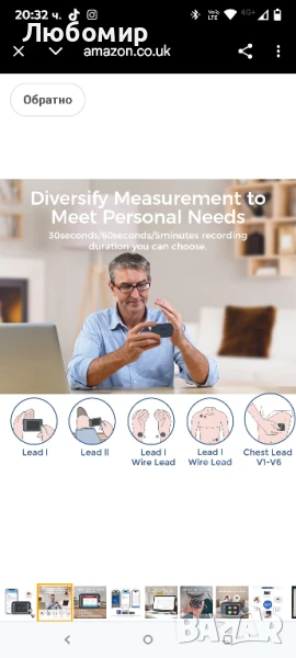 ЕКГ монитор със сензорен екран, запис на ЕКГ 30s/60s/5min, анализ на ЕКГ с изкуствен интелект, поддръжка за двама потребители, неограничено място за съхранение в приложения, мобилен преносим монитор за сърдечна дейност, работа със смартфон и компютър за домашна употреба.Измерване в движение: Checkme ЕКГ мониторът може да записва 30s/60s/5min ЕКГ вълнови форми. 30s измерването ви позволява бързо да записвате ЕКГ, когато срещнете внезапни сърдечни нарушения; когато ръцете ви треперят или кожата ви е твърде суха, с помощта на ЕКГ кабела можете да записвате 5-минутна ЕКГ, което може да ви помогне да получите по-стабилна и по-ясна форма на вълната.