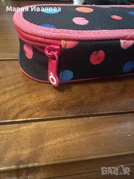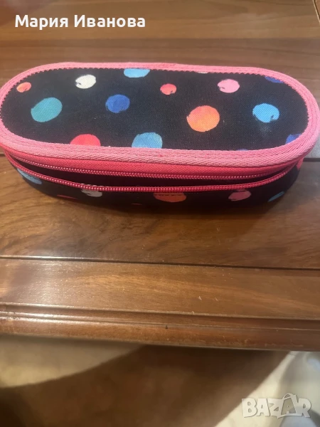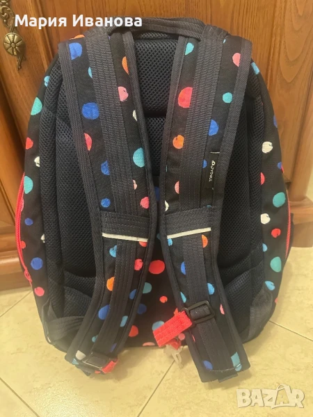 Раница на точки за ученици и студенти. Използвана, но в добро състояние. Полезна за пренасяне на учебни материали и лични вещи. Удобна и практична за ежедневна употреба.Раницата е изчерпана в много саитове като е взета от Topgal . Купена е за 180 ( с несесера) лв ,но я продавам за 35 евро (с несесера).С преглед и тест.