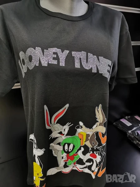 Тениска с принт на Looney Tunes в черен цвят Л размер → Обява 50853913