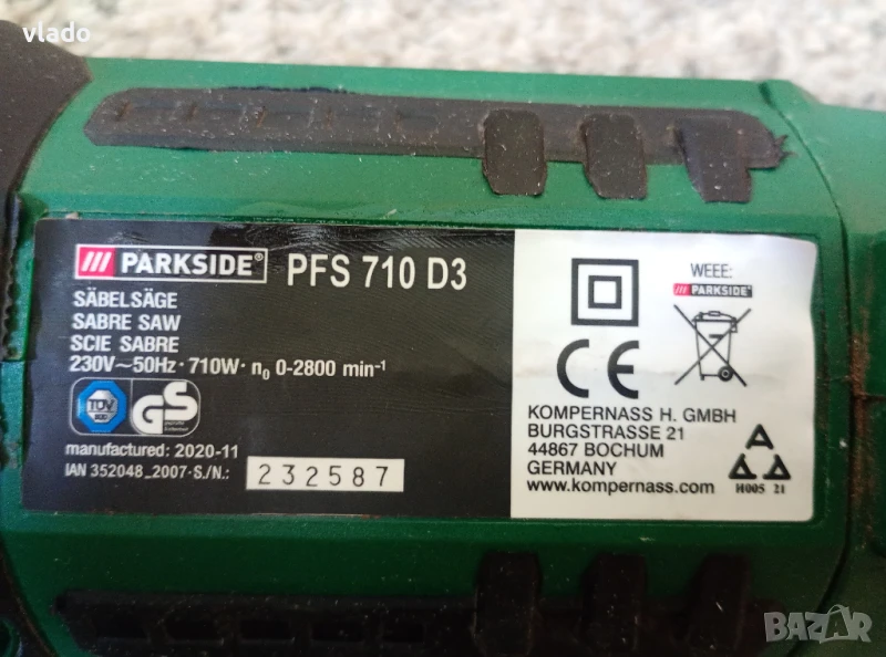 Продавам саблен трион Parkside за рязане на дърво, пластмаса, метал и леки материали.