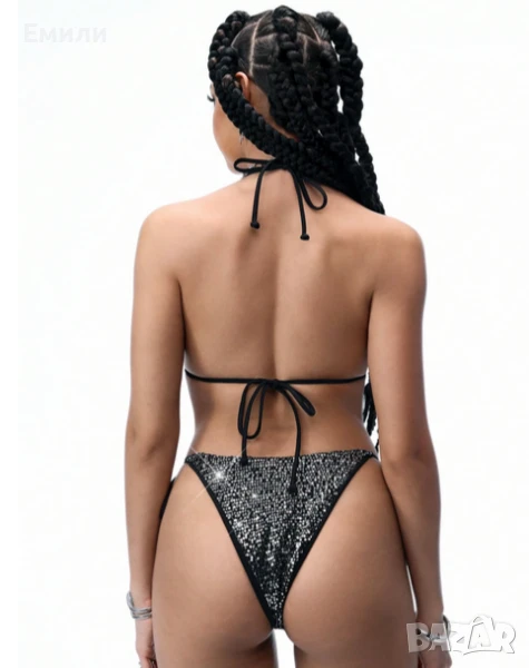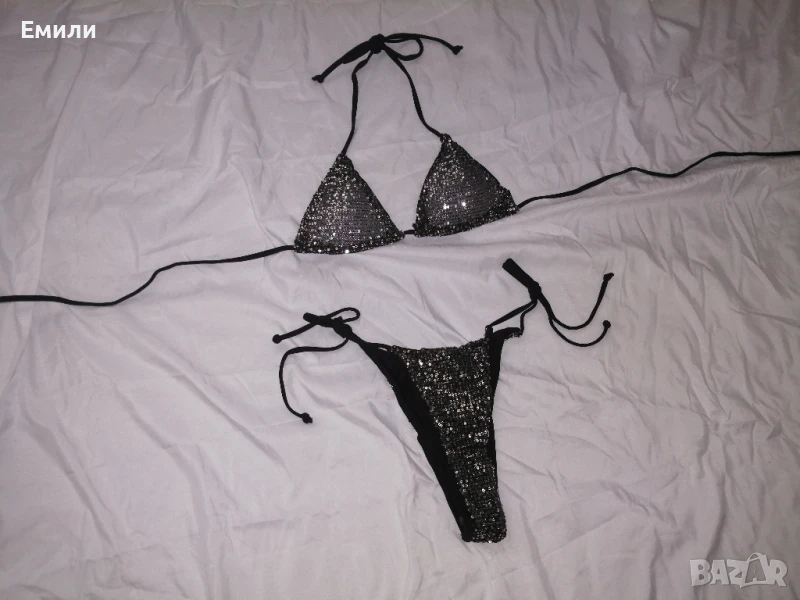 Нов комплект дамски бански от две части с блестящи пайети р-р M