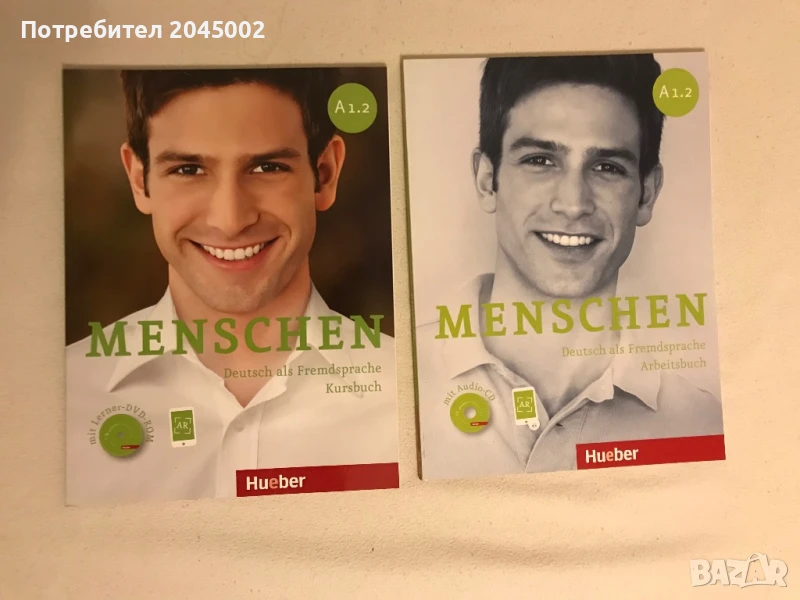 Продавам учебници по Немски език - Menschen A1.1 и Menschen A1.2. Учебниците са използвани, като в тях е писано (в учебника A1.1 е писано най-малко, а другите са почти изписани). Всичко в тях е абсолютно вярно, така че могат да се използват и като ключ с верни отговори.