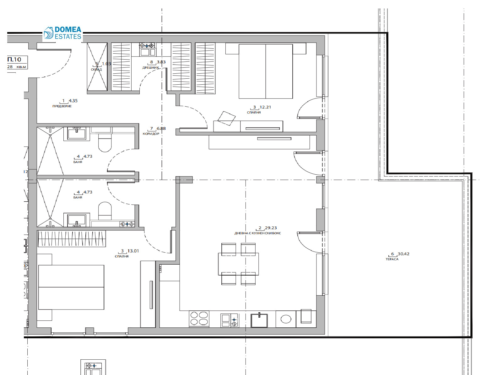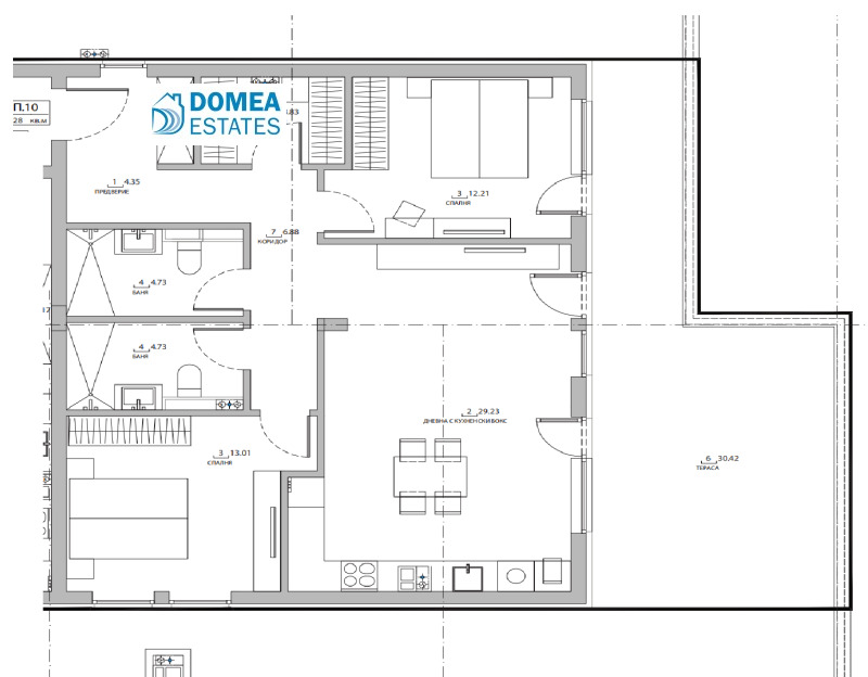 Две комфортни спални, разположени така, че да осигуряват уединение и спокойствие;