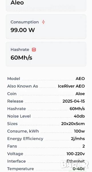 майнер (копачка) Iceriver Aleo AE0 miner → Обява 50854696