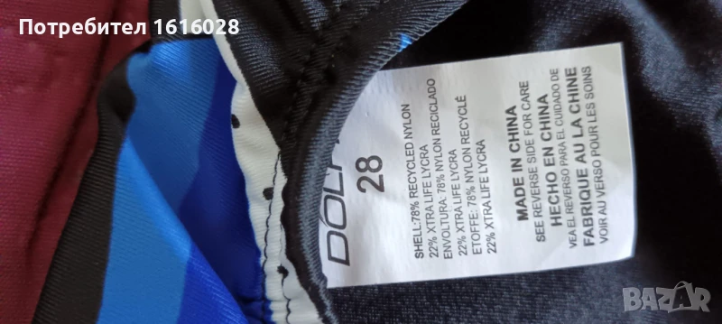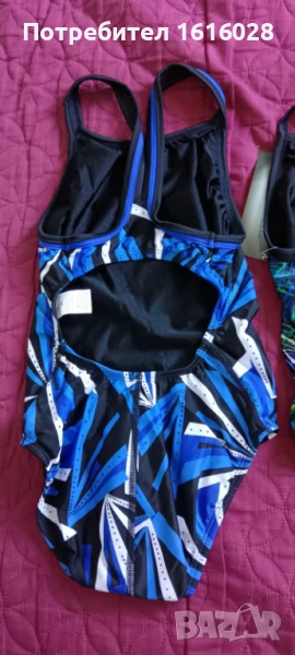 Синьо-черен с бяло бански размер 28 - шир.под мишници 26 см. в обиколка 52 см.шир.в ханш 26 см.в обиколка 52 см. Дъл. 56 см. от рамо до четал.Цена 16 лв.