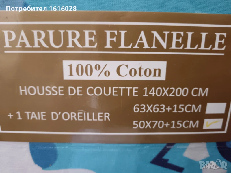 - размери: плик за завивка 140 см./ 200 см и калъфка за възглавница 50 см./ 70 см.