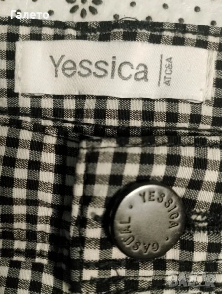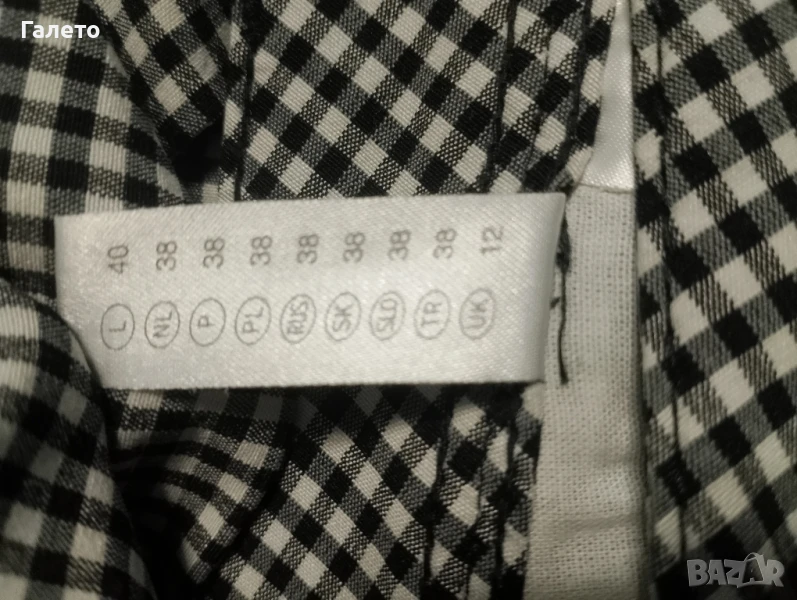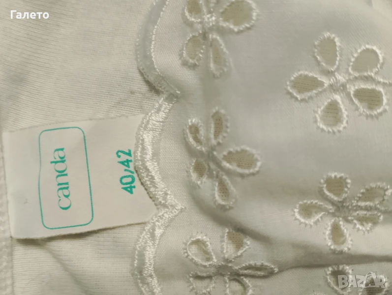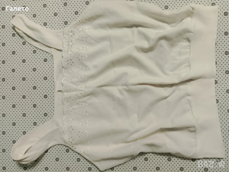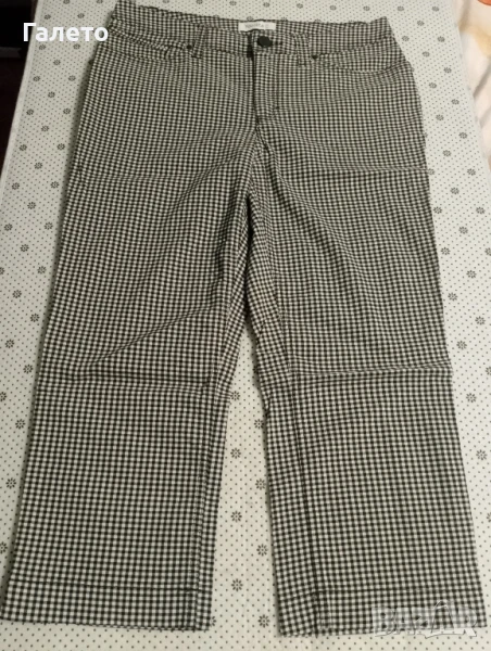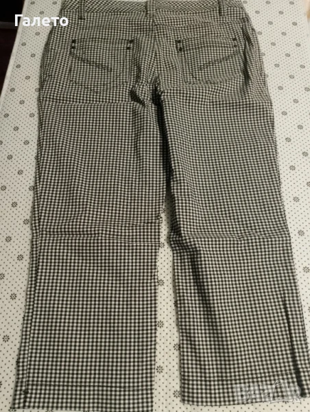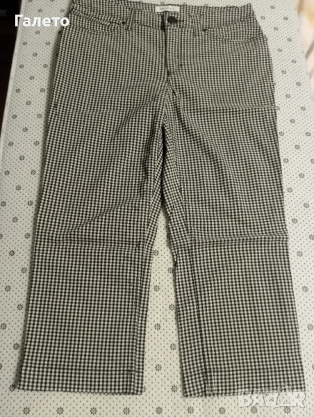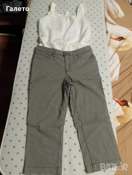 Еластичен черно - бял панталон с 2 бр. потници бял памучен и с апликация. Удобни и практични за сезона! Без забележки! Размер М -L Цена 10 лв.