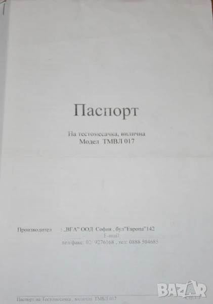тестомесачката е ползвана и е перфектна, модела е ТМВЛ 017 и е трифазна.Има си паспорт.Намира се в Благоевград и изпращам само по ЕКОНТ.Теглото и е около 20кг.