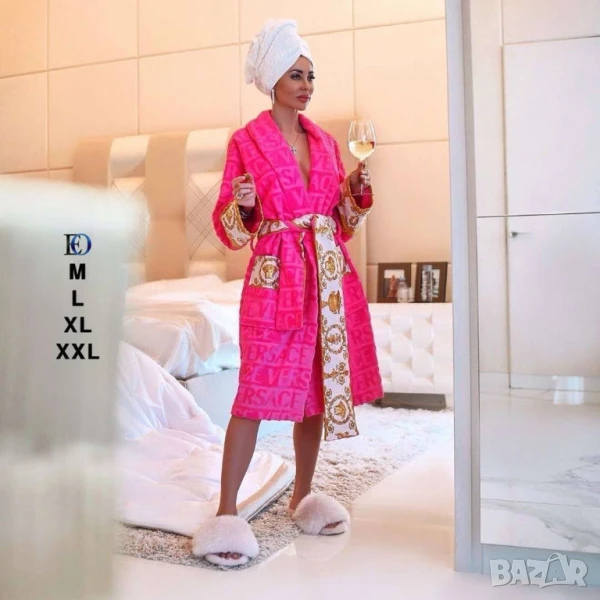 халат за баня Versace - нов модел- Изработен от 100% премиум памук- Предлага се в размери: M, L, XL, XXL- цена: 145лвОтдайте се на елегантността и комфорта на Versace!Важно! Моля прочетете преди поръчка:Ние работим по предварителни поръчки и не поддържаме стока на склад. Събираме поръчки в рамките на една седмица, след което пътуваме до склад в Турция, откъдето лично избираме и закупуваме артикулите. След като получим стоката, я изпращаме до вас с Еконт.Благодарим ви за доверието и разбирането!