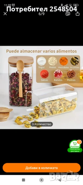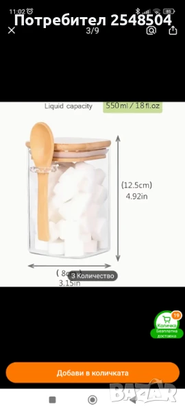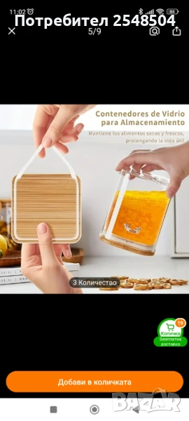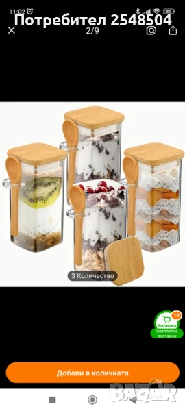 Стъклени буркани с бамбукови капаци с лъжички 6 бр. → Обява 50857852