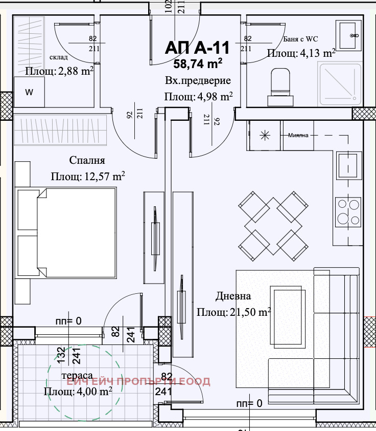 📐 Реална застроена площ: 58,74 кв.м