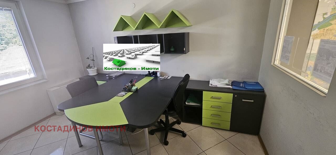 Предлагаме ви на бизнес сграда от най - висок клас като техническо изпълнение, местоположение и авторитет модерен офис. Собственици и наематели са банки, адвокатски и нотариални кантори, финансови институции, консултански фирми, счетоводни къщи и др. добро местоположение - в идеалния център на Пловдив, до пл. Съединение, Историческия, Археологическия музеи, Съдебната палата и Прокуратурата. Офис 100кв.м напълно оборудван и готов за работа! Може да се осигурят и паркоместа при желание. Ще бъде свободен на 25-ти август. При сериозен интерес и огледи обадете се на фирма Костадинов Имоти!
