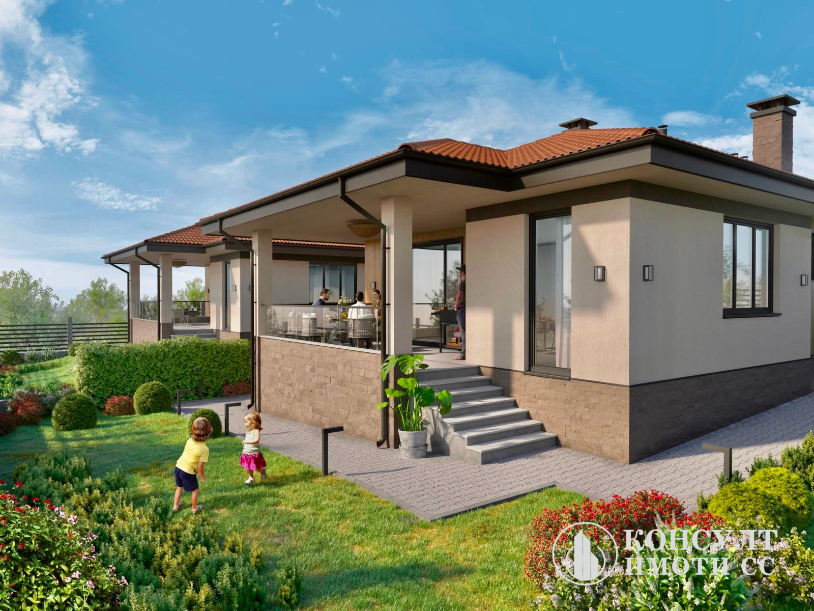 Продава къща на един етаж с РЗП 166 кв.м и 26 кв.м гараж.