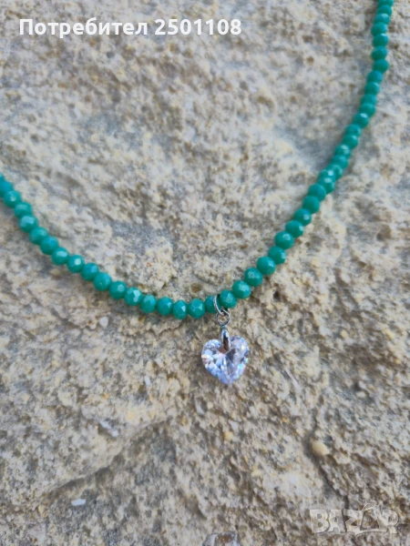 Колие със стъклени кростални мъниста и висулка кристално сърце.Обиколката на колието е 40 см.