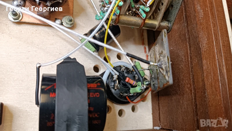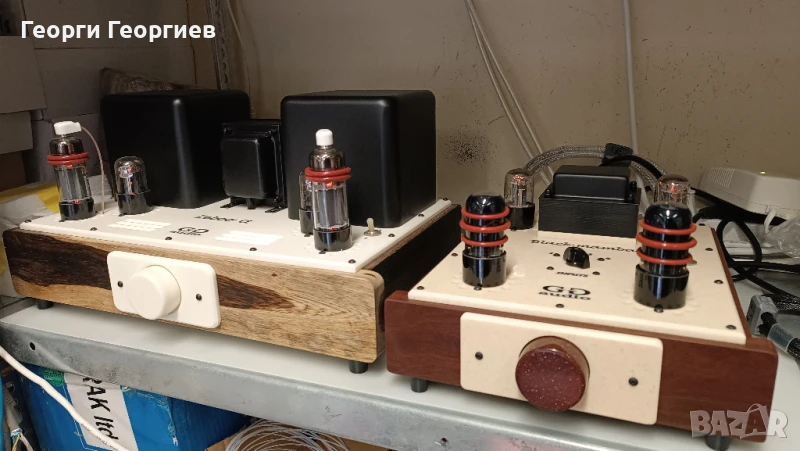 лампи 6П6С в триодно свързване и изправителни 6Ц5С. Катодни кондензатори Rubycon Black Gate.