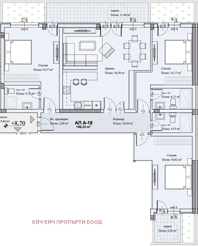 Четиристаен апартамент A18 | 178,51 кв.м | Етаж 4, Секция А