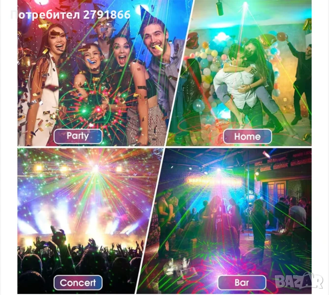 - 【3-в-1+UV LED】3-в-1 RGB LED и UV LED ви позволяват да създавате цветни светлинни ефекти за всеки повод. Това означава, че устройството може да излъчва различни светлинни цветове, създавайки или жизнен, динамичен ефект, или изискан, атмосферен ефект. В допълнение, UV LED добавя опции за флуоресцентно осветление, идеални за партита или тематични шоута.
