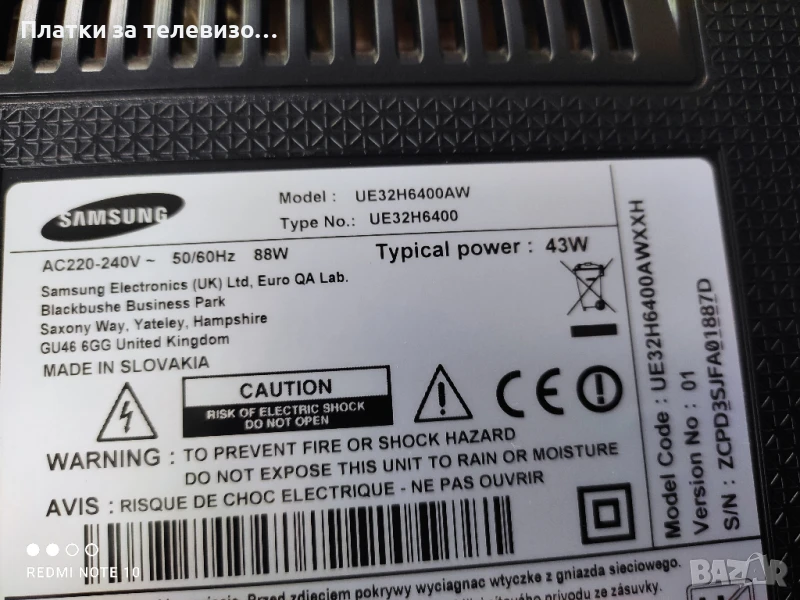 SAMSUNG UE32H6400AW за части → Обява 50860424