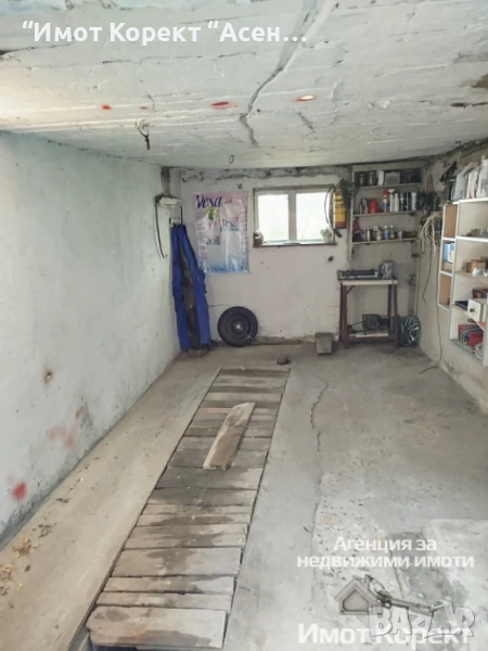 Към етажа има Гараж с канал 17м2, изба 15м2 и 1/4 идеални части от двора.