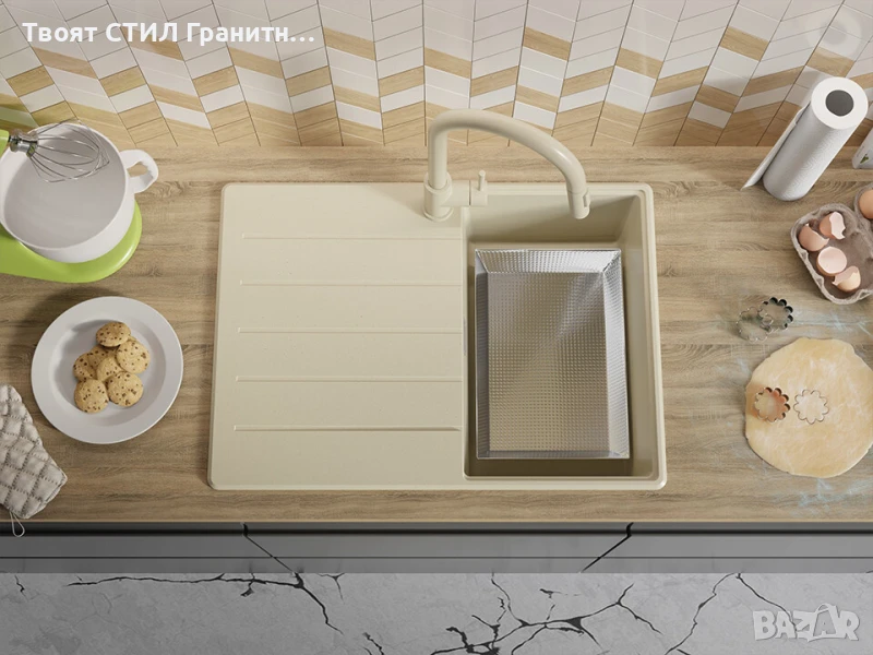 Беж кухненска мивка от гранит Копенхаген 40 Top 700х500 → Обява 50860925