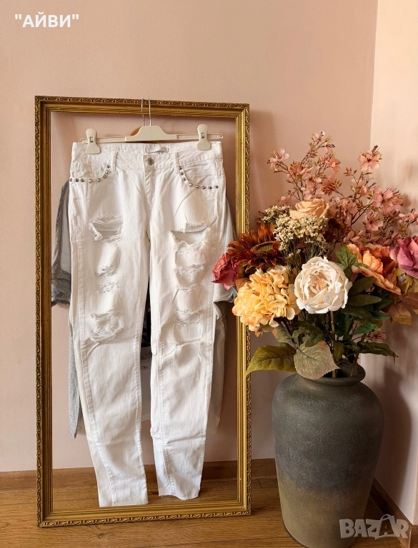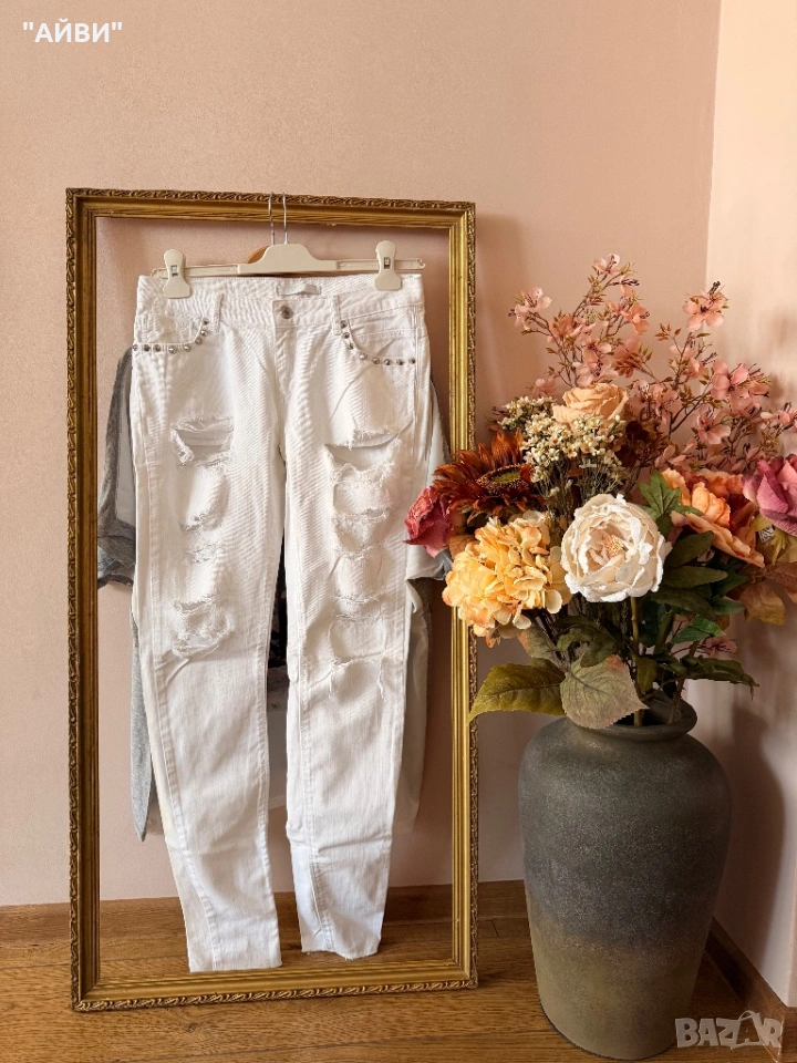 Perfect jeans Жестоки дънки разм.28/29 В отлично състояние. Оригинален модел, фабрично прокъсани, с метални капси по джобовете за допълнителен ефект. Модел стеснен надолу.