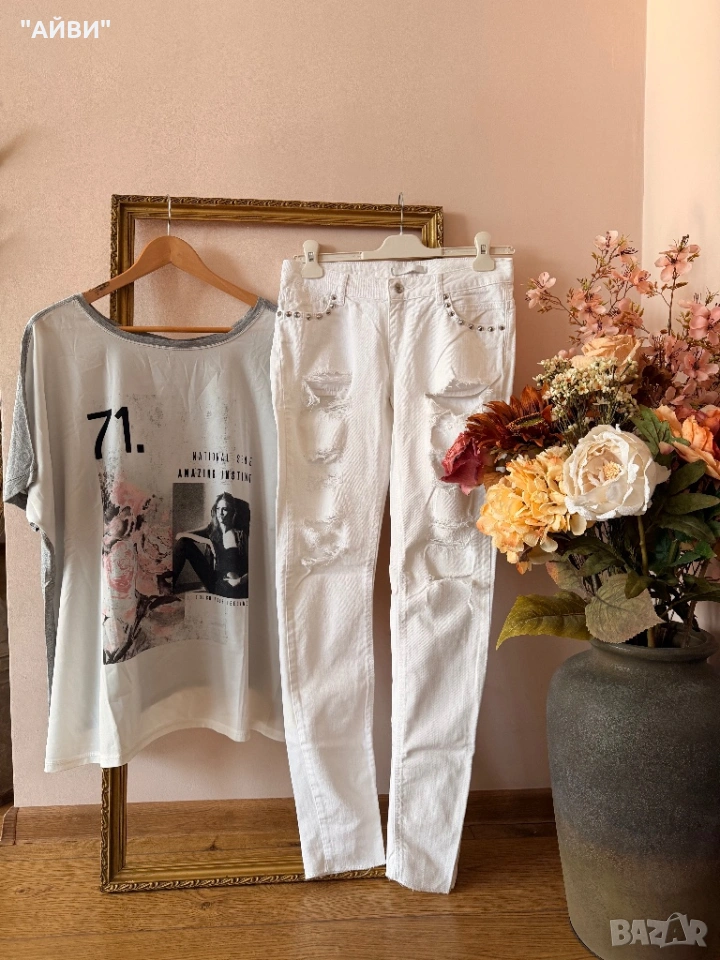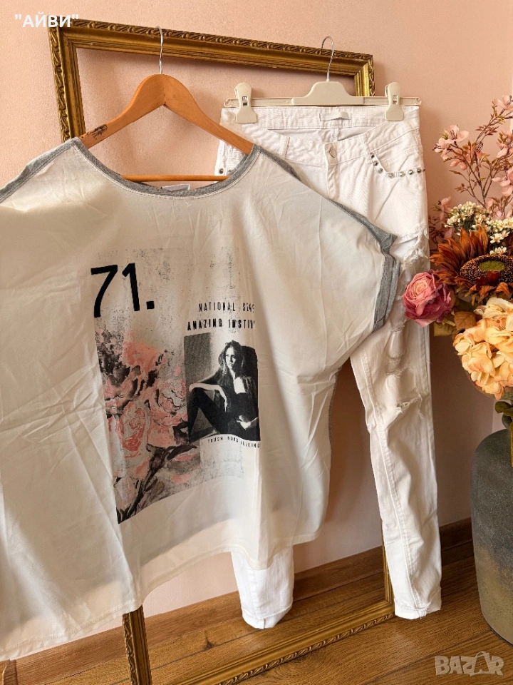 Дамски маркови дънки и топ → Обява 50861125