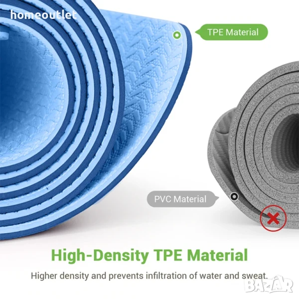 Изработена от първокласен TPE материал, нашата постелката за йога е с дебелина 6 мм и противоплъзгаща текстура от двете страни.