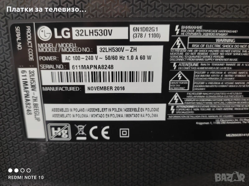 LG 32LH530V за части, снимка 1 - Части и Платки - 50861390 LG 32LH530V за части, снимка 2 - Части и Платки - 50861390 LG 32LH530V за части, снимка 3 - Части и Платки - 50861390 LG 32LH530V за части, снимка 4 - Части и Платки - 50861390 LG 32LH530V за части, снимка 5 - Части и Платки - 50861390 LG 32LH530V за части, снимка 6 - Части и Платки - 50861390 LG 32LH530V за части, снимка 7 - Части и Платки - 50861390 LG 32LH530V за части, снимка 8 - Части и Платки - 50861390 LG 32LH530V за части, снимка 9 - Части и Платки - 50861390 LG 32LH530V за части, снимка 10 - Части и Платки - 50861390 LG 32LH530V за части, снимка 11 - Части и Платки - 50861390 LG 32LH530V за части, снимка 12 - Части и Платки - 50861390 LG 32LH530V за части, снимка 13 - Части и Платки - 50861390 LG 32LH530V за части, снимка 14 - Части и Платки - 50861390 LG 32LH530V за части, снимка 15 - Части и Платки - 50861390 LG 32LH530V за части, снимка 16 - Части и Платки - 50861390 LG 32LH530V за части, снимка 17 - Части и Платки - 50861390 1/17