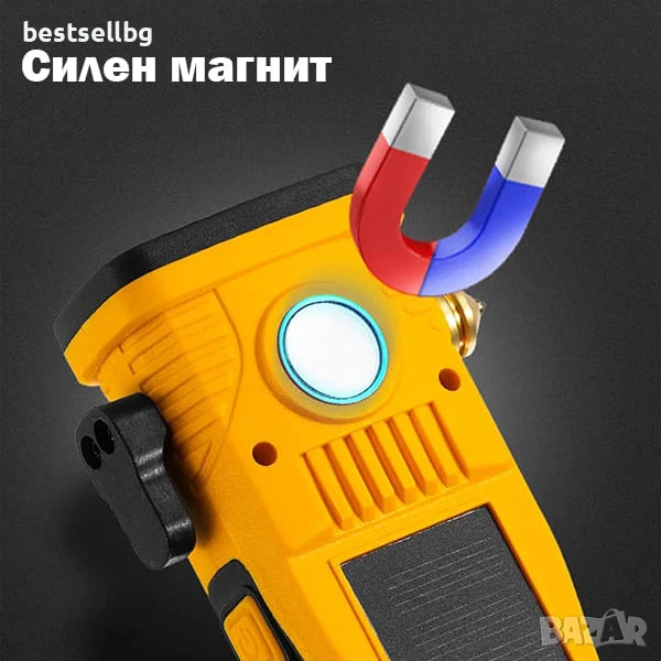 - Мощен магнит: Позволява лесно закрепване на фенера към метални повърхности, освобождавайки ръцете ви за други дейности.