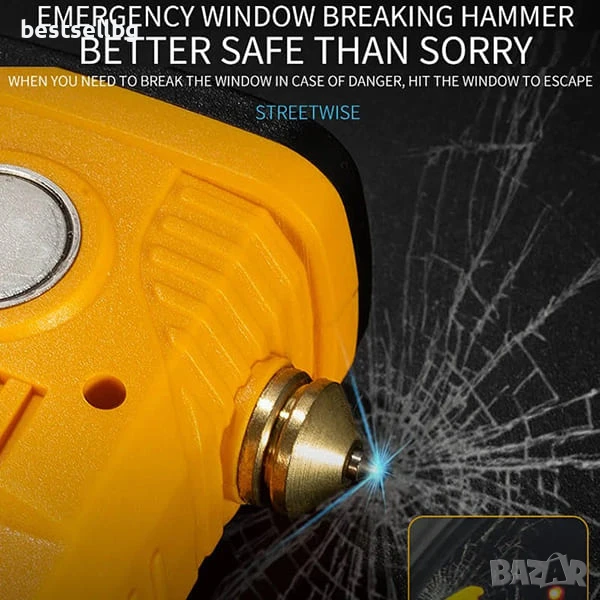 - Вградено чукче за прозорци: В случай на авария, можете лесно да счупите прозорец, за да излезете от автомобила или друго превозно средство.