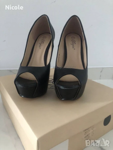 Страхотни черни обувки на платформа и високи токчета, нови!