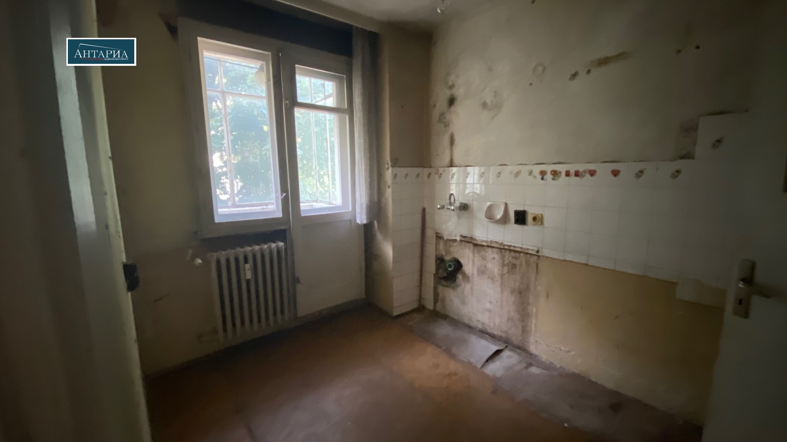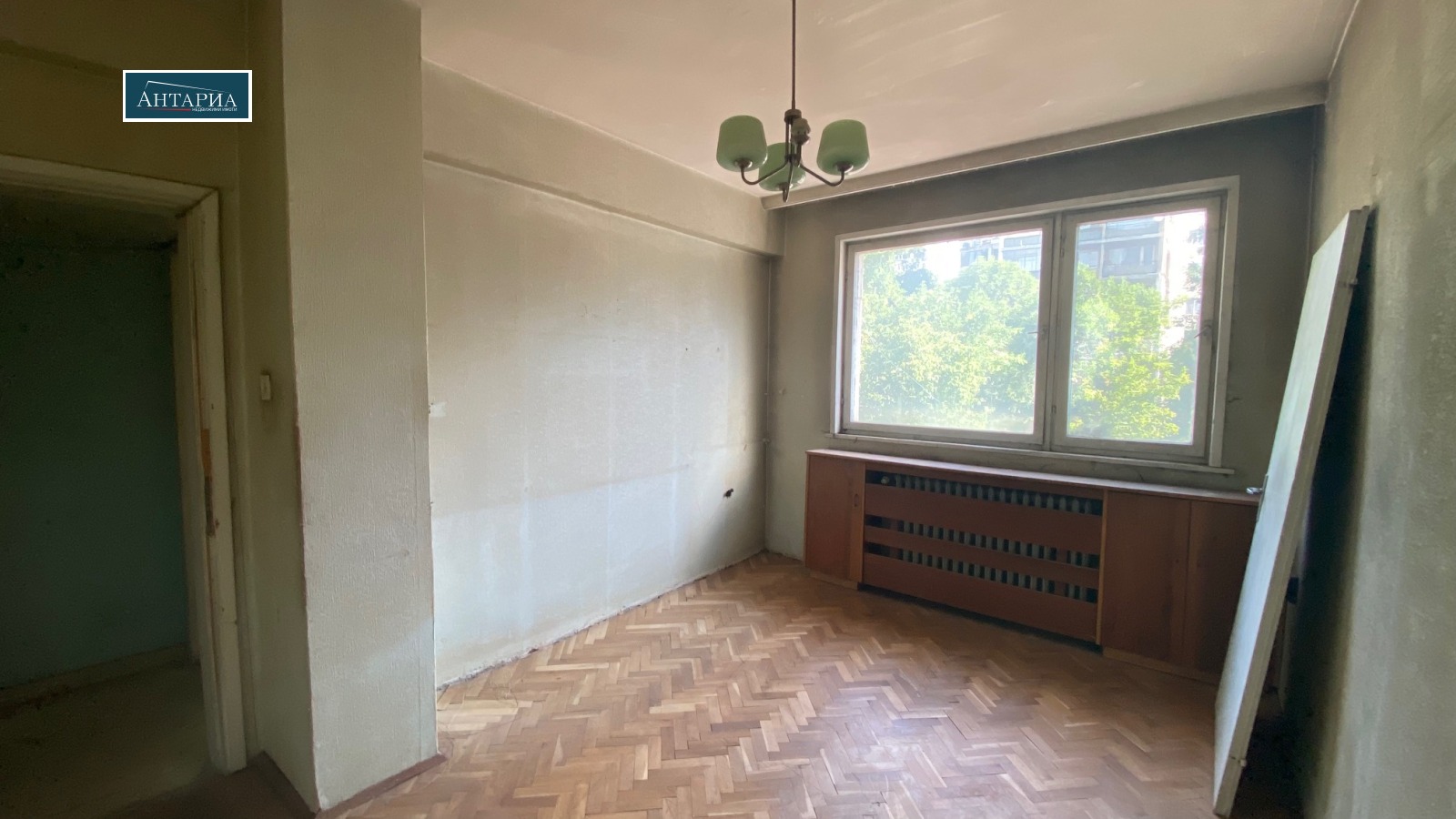 Тристаен апартамент в сграда от 70-год., между две емблематични улици в квартал Изток- ул. Незабравка и Латинка (до ул. Майор Юрий Гагарин). Апартаментът е с изложения югоизток и северозапад, на втори етаж, разпределен в коридор, просторна дневна, свързана с трапезария и кухня, две самостоятелни спални, баня с тоалетна, тоалетна, складово помещение, голяма тераса пред дневната и трапезарията, балкон пред кухнята.