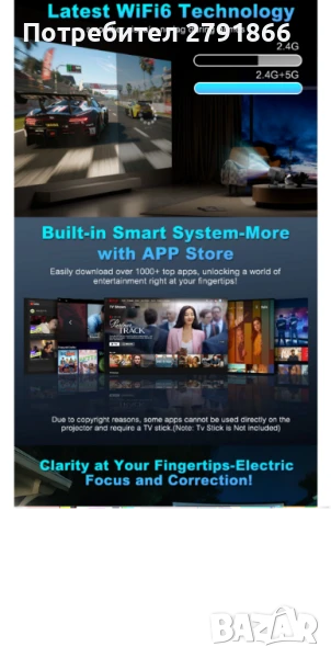 Някои приложения или филми не могат да се проектират и възпроизвеждат нормално поради защита на авторските права и изискват телевизионна стойка (TV Stick).