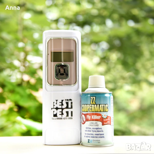 Висококачествен електронен дозатор с LCD дисплей, който автоматично разпръсква инсектицидния спрей и осигурява постоянна защита срещу летящи насекоми.
