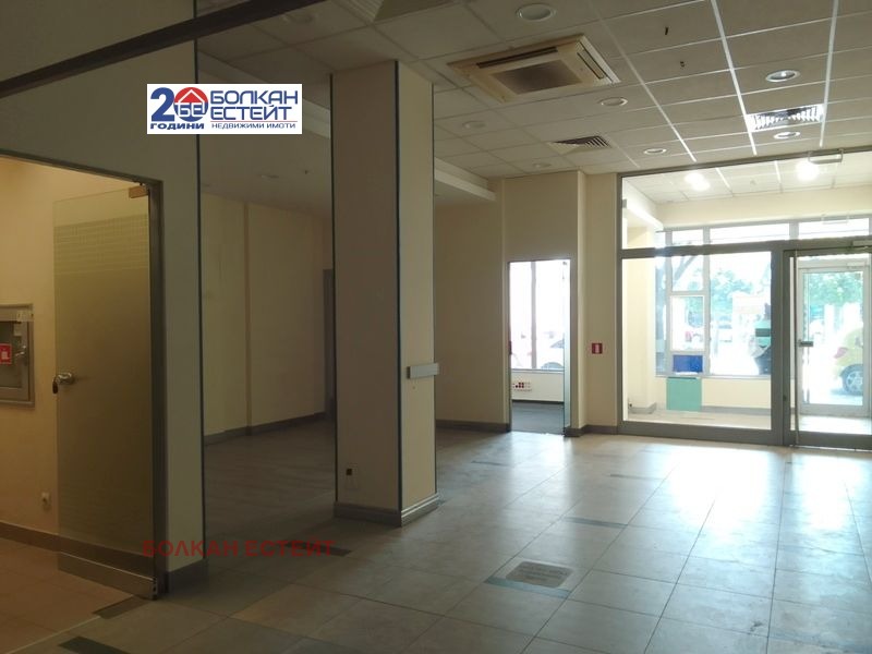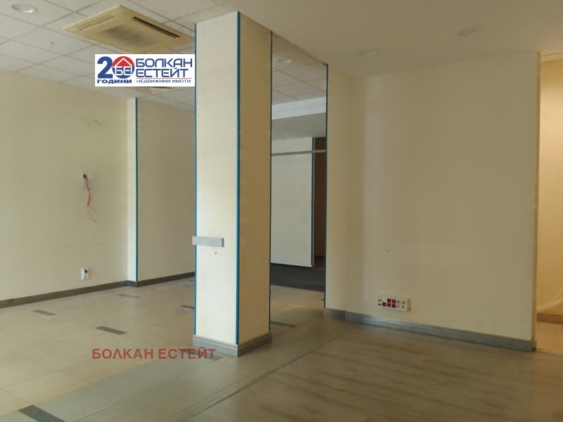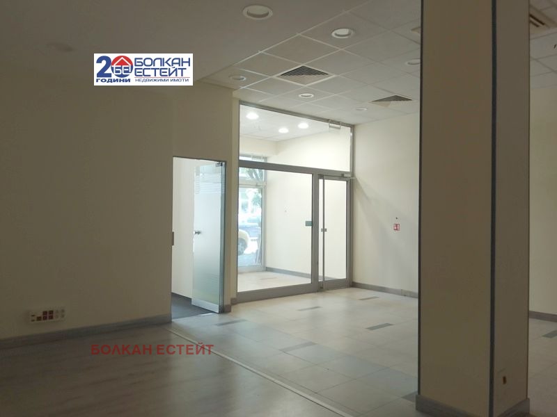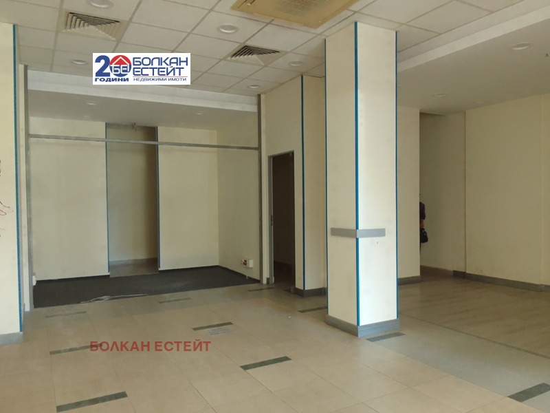 Търговско помещение под наем в центъра на Велико Търново! Помещението е с площ от 117 кв. м. , разпределено между антре, голяма зала, помещение предназначено за офис, сървърно помещение, сервизно помещение, коридор. Помещението е окабелено за компютърна мрежа, с изградена пожароизвестителна система и климатична система. Имотът се намира на главна търговска улица в гр. Велико Търново с голям човеко поток. Има големи витрини на ново улица, които са с противоударни стъкла и могат да при необходимост да бъдат брандирани. Помещението е в добро общо състояние, като последно е било използвано като офис. Посочената наемна цена е с ДДС.