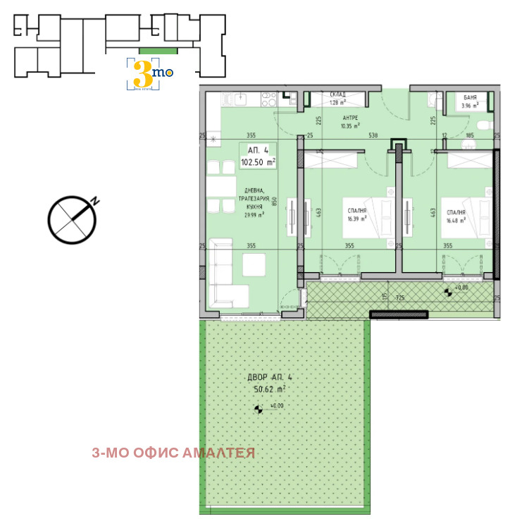 3mo Амалтея предлага за продажба тристаен апартамент със собствен двор на първи - партерен етаж, в новостроящ се комплекс от две луксозни жилищни сгради в ж.к. Малинова долина, в близост до бул. Околовръстен път.