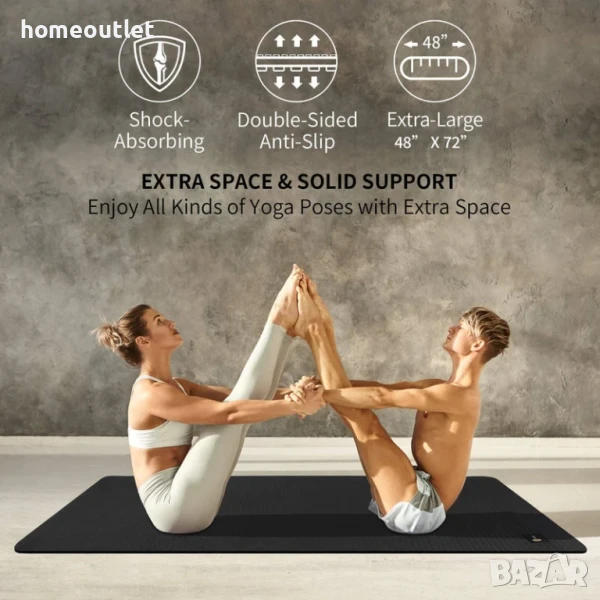 Нашата екстра голяма постелка за упражнения предлага обширна повърхност (183 см x 122 см), което ви дава пълна свобода за всички йога пози и пилатес движения.