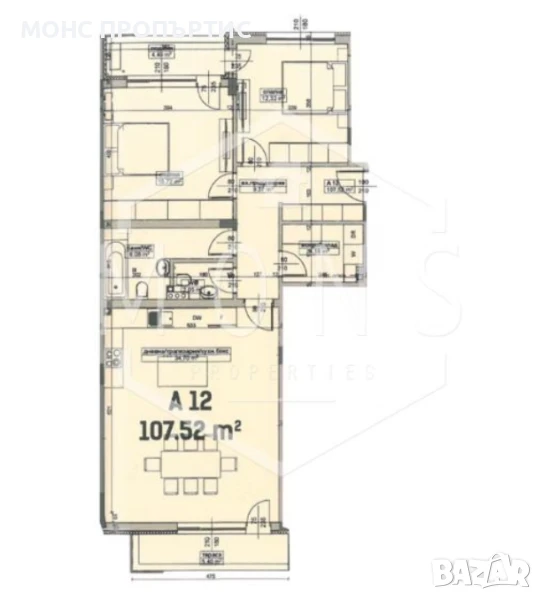 Имотът е с площ 107.52 м2.