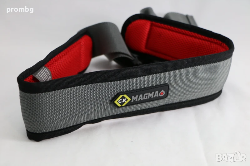 работен колан за инструменти, английски, внос от Германия. Марка CK Magma - Великобритания. Изключително здрав и удобен за работа, регулира се от 80 см до 115 см. Ширина 7,5 см. Лесно и бързо се закопчава и откопчава. Тегло: 170 гр.