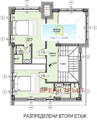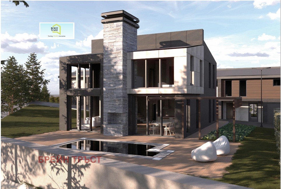 Къщата предлага просторна дневна с камина и панорамни прозорци, 3 спални със собствени бани, склад и ски гардероб, санитарно помещение за гости, двоен гараж и собствено дворно пространство от 1648.63 кв.м, както и самостоятелен басейн с минерална вода.